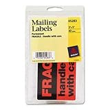 AVE5283 - Special Message 3 x 5 Labels Printed Fragile, Black/Red Neon, 40 per Pack (AVE5283)